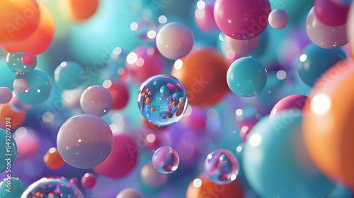 Vibrant Abstract Colorful Bubble Spheres with Holographic Pastel Gradient Background