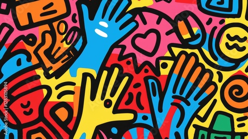 Vibrant Abstract Colorful Doodle Art Print Bold Hand Drawn Design Graphic Illustration
