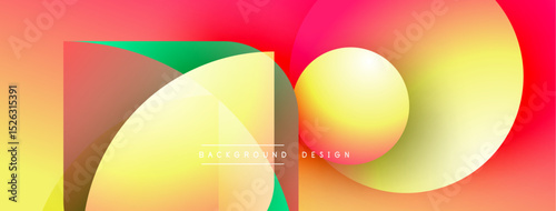 Vibrant abstract design features overlapping colorful circles, gradients. Modern aesthetic, suitable for backgrounds, presentations.