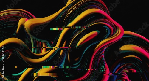 Vibrant abstract digital art with dynamic colorful waves and glitch effects