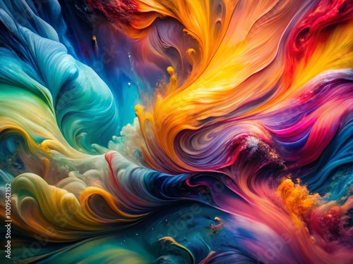 Vibrant Abstract Enunciation Artwork Featuring Fluid Shapes and Dynamic Colors in Bold Composition