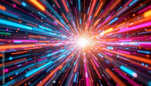 Vibrant Abstract Explosion of Colorful Light Rays Radiating from a Central Point in Cosmic Space