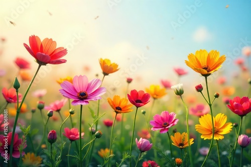 Vibrant abstract field of wildflowers in full bloom, perfect for website backgrounds or digital design projects Ideal for spring, summer, or nature themes , rural, natural