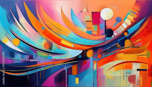 Vibrant Abstract Figurative Artwork Colorful Brush Strokes Swirl in a Fusion of Emotions and Imagery, showcasing an Exhilarating Explosion of Chromatic Energies on the Canvas.