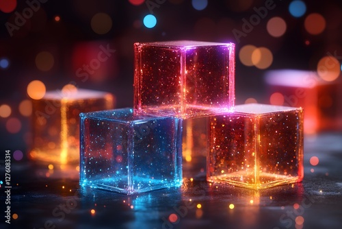 Vibrant Abstract Geometric Art with Glowing Transparent Cubes for Modern Design