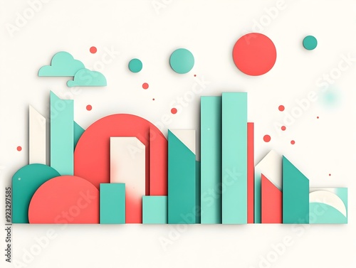Vibrant Abstract Geometric Shapes Composition in Turquoise and Red Minimalist Design