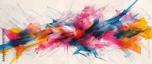 Vibrant Abstract Geometric Shapes in Watercolor on White Background with Pink Blue Yellow and Orange Colors