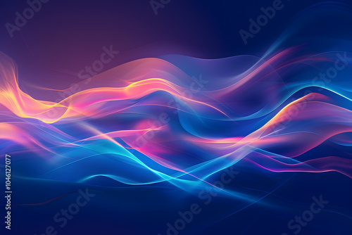 Vibrant abstract glowing waveforms in motion, featuring fluid light streaks in shades of blue, pink, and purple on a dark background. Perfect for creative media projects.