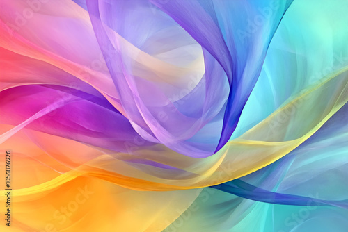 Vibrant, abstract green, blue, purple, yellow and pink waves on light background. Flowing gradient abstract with soft textures. Modern design element for website or presentation