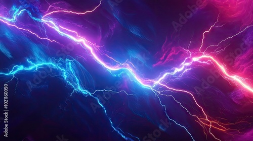 Vibrant abstract lightning in blue, purple, and pink shades, creating a dramatic and dynamic visual effect.