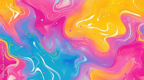 Vibrant abstract liquid marble background with neon pink, yellow, blue, purple, and orange swirls, creating a textured, colorful pattern ideal for posters or wallpapers.