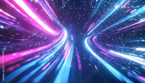 Vibrant Abstract Neon Light Trails Motion Background