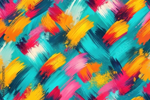 Vibrant Abstract Painting with Bold Brushstrokes and Intertwined Colors Featuring a Dynamic Composition of Hues