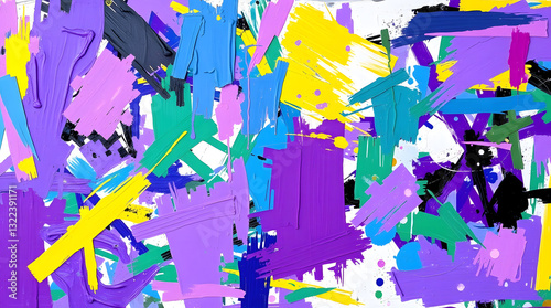 Vibrant Abstract Painting with Bold Brushstrokes in Purple, Blue, Green, and Yellow | Emotional Expression