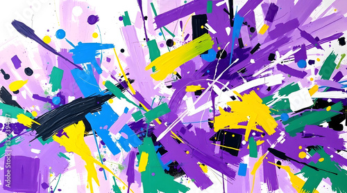 Vibrant Abstract Painting with Bold Brushstrokes in Purple, Blue, Green, and Yellow | Emotional Expression