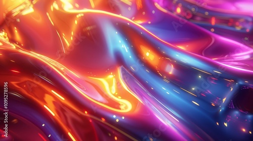 Vibrant abstract patterns create a lively visual texture with colorful waves and reflections