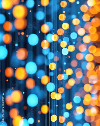 Vibrant abstract representation of colorful bokeh lights in blue and orange