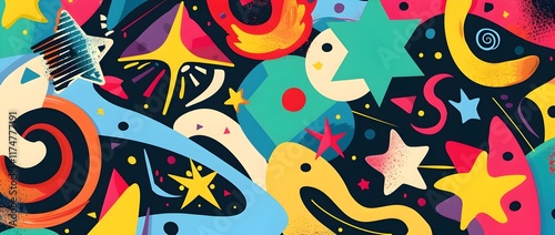 Vibrant Abstract Shapes and Patterns Creating a Dynamic and Colorful Digital Artwork Composition