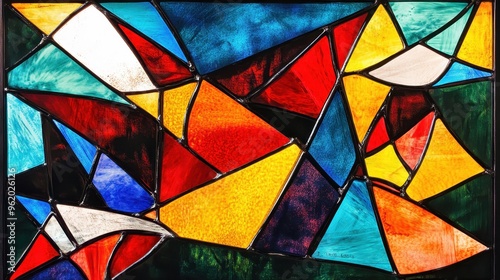 Vibrant Abstract Stained Glass Design with Sharp Angular Shapes
