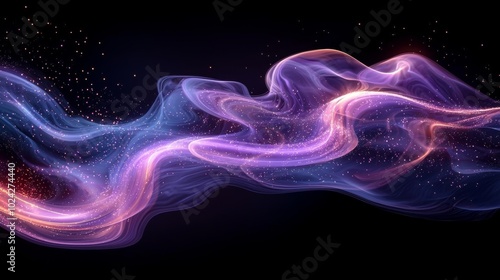 Vibrant abstract waves in shades of purple and pink, creating a sense of flow and motion against a dark backdrop.