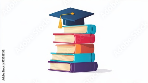 Vibrant Academic Success: Minimalist Stack of Colorful Books with Graduation Cap Illustration