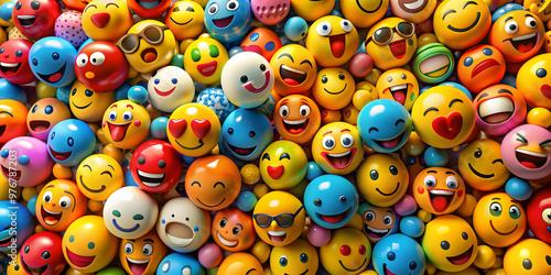 Vibrant and colorful emojis representing a variety of emotions and objects for digital communication , Emojis