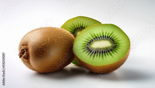 vibrant and fresh this whole kiwi fruit is cut in half professionally photographed on clean white background with no shadows visible