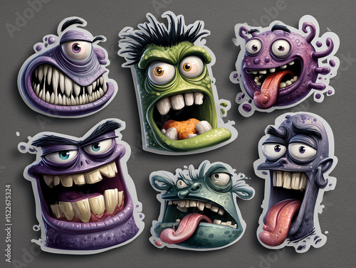 Vibrant and humorous sticker sheet featuring quirky, diverse characters with exaggerated gestures and expressions.