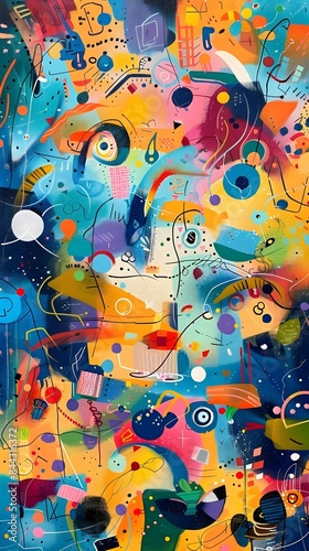 Vibrant and Imaginative Abstract Digital Art Composition with Playful Shapes Vivid Colors and Dynamic Patterns