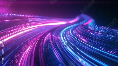 Vibrant and mesmerizing, this abstract futuristic background showcases neon pink and blue moving wave lines and bokeh lights. Wallpaper and Background