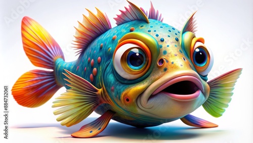 Vibrant, anthropomorphized tropical fish with exaggerated features and endearing expressions float against a pristine white background.