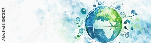 Vibrant Artistic Representation of Earth's Globe with Digital Icons