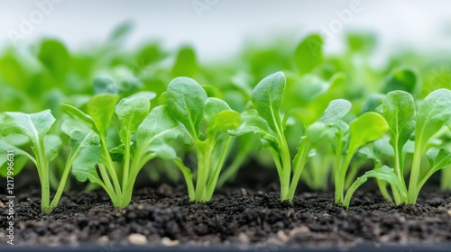 Vibrant arugula seedlings emerging in a sunlit garden bed