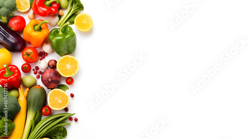 Vibrant Assortment of Fresh Fruits and Vegetables on White Background