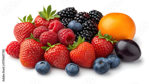Vibrant assortment of fresh ripe berries and fruits including strawberries blueberries raspberries blackberries and apricot