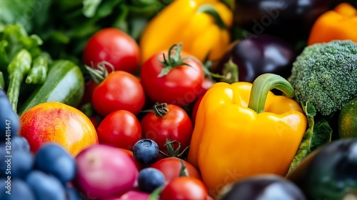 Vibrant assortment of fresh vegetables and fruits showcasing color diversity and healthy eating lifestyle : Generative AI