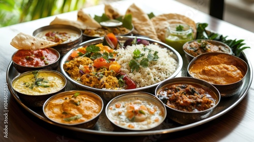 Vibrant assortment of traditional Indian cuisine served on a platter
