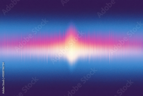 Vibrant audio waveform graphic in purple and blue tones, showcasing sound visualization with a striking central peak and dynamic patterns.