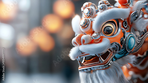 Vibrant augmented lion dance with led technology showcasing cultural innovation and festive energy