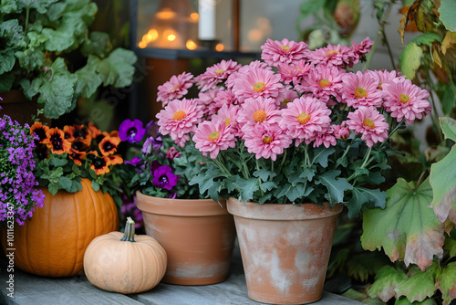 Vibrant Autumn Flowers and Pumpkins in a Cozy Fall Garden Setting