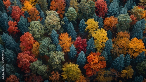 Vibrant Autumn Foliage Displaying Colorful Trees Overlooking a Forest at Sunrise. Generative AI