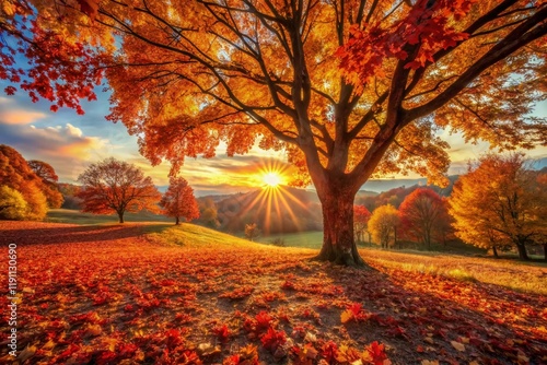 Vibrant Autumn Leaves, Fall Foliage, Golden Hour, Nature Photography, Rule of Thirds Composition
