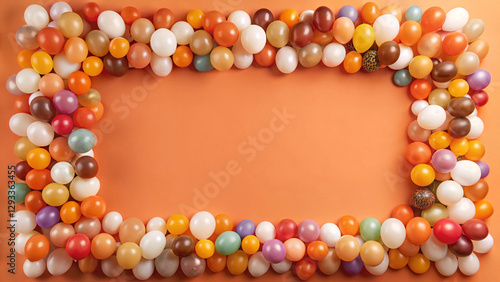 Vibrant balloon border frame repeat pattern. Perfect for festive party invitations, event decorations, or cheerful greeting cards. Surface pattern design, frame made of colorful beads isolated