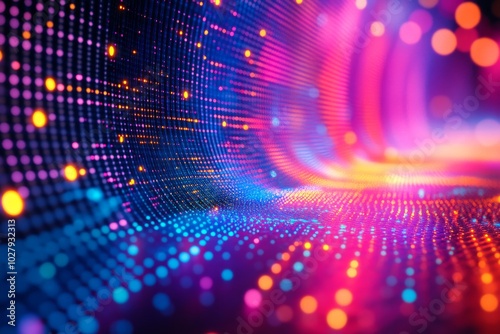 Vibrant bar chart on a futuristic background, neon colors, data visualization