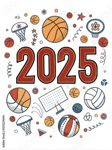 Vibrant Basketball Theme 2025 Illustration - A lively illustration depicting basketball elements and the year 2025, perfect for sports events and celebrations.
