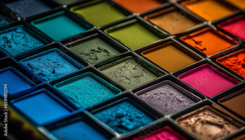 Vibrant beauty set eyeshadow palette with a rainbow of colors generated by AI
