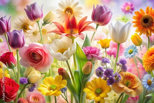 Vibrant Blooming Flowers: Long Exposure Isolated on White Background