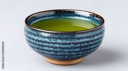 Vibrant blue and green ceramic tea bowl.