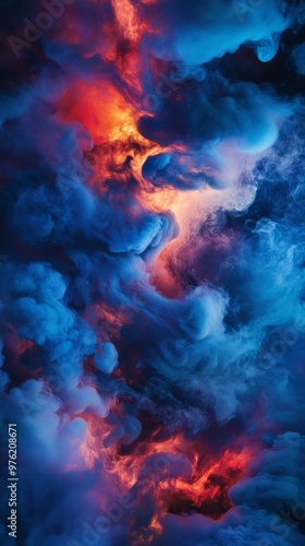 Vibrant blue and orange nebula, cosmic clouds. Abstract space and nature concept
