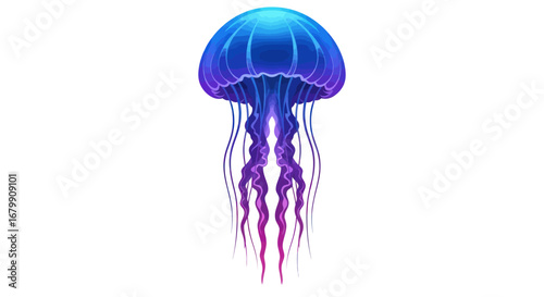 Vibrant blue and purple jellyfish illustration isolated on white.